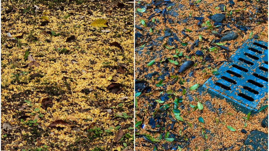 第三,桂花集中掉落在地上,还可能受到土壤、建筑垃圾、工业污染物等的污染。树下和绿化带是宠物经常活动的区域,桂花还可能被宠物尿液、粪便污染,携带致病菌。所以,直接收集掉落在地上的桂花,食用风险更高。